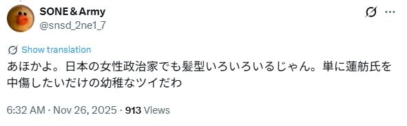 >>単に蓮舫氏を中傷したいだけの幼稚なツイだわ