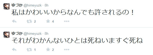 新藤加菜は、「私はかわいいからなんでも許されるの! それが分かんない人は死ね、今すぐ死ね」と発言するほど、自己愛と憎悪に満ち溢れた人間です。