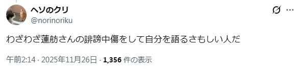 >>わざわざ蓮舫さんの誹謗中傷をして自分を語るさもしい人だ