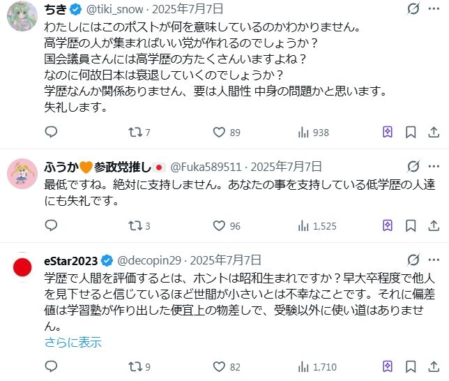 >>【大炎上】「参政党の支持者に高学歴はいない」と言ってないのに炎上!