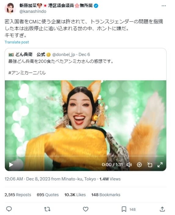 — 新藤加菜🐶🇯🇵港区議会議員🌸無所属 (@kanashindo) January 20, 2025