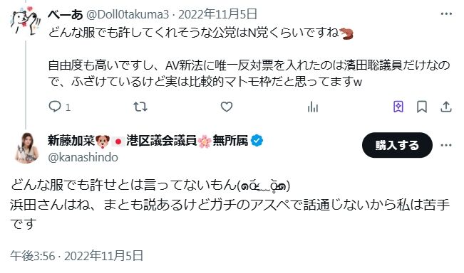 そんな発言を平然とできる人間の一人が新藤加菜です。自分に否定的リプライを送ってきた相手に対してこの発言。
