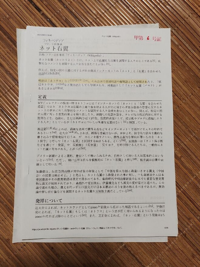 そもそも、新藤が「ネトウヨ」という表現が「それ自体で差別用語または侮辱語として用いられている」と主張した根拠は、一体何だったのか。驚くべきことに、その根拠はWikipediaだったのです。新藤加菜は、Wikipediaの「ネット右翼」のページのコピーを証拠としてドーンと裁判所に送りつけたのです!